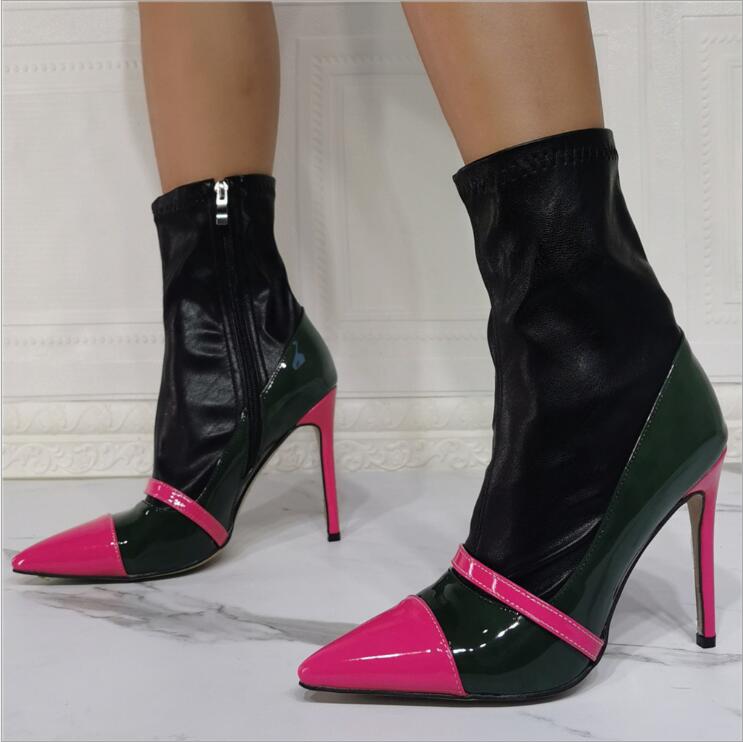 Sexy patent leather stitching stretch super high heel women's short boots S-519