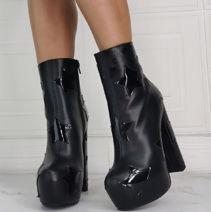 Star thick heel fashion super high heel women's short boots S-538