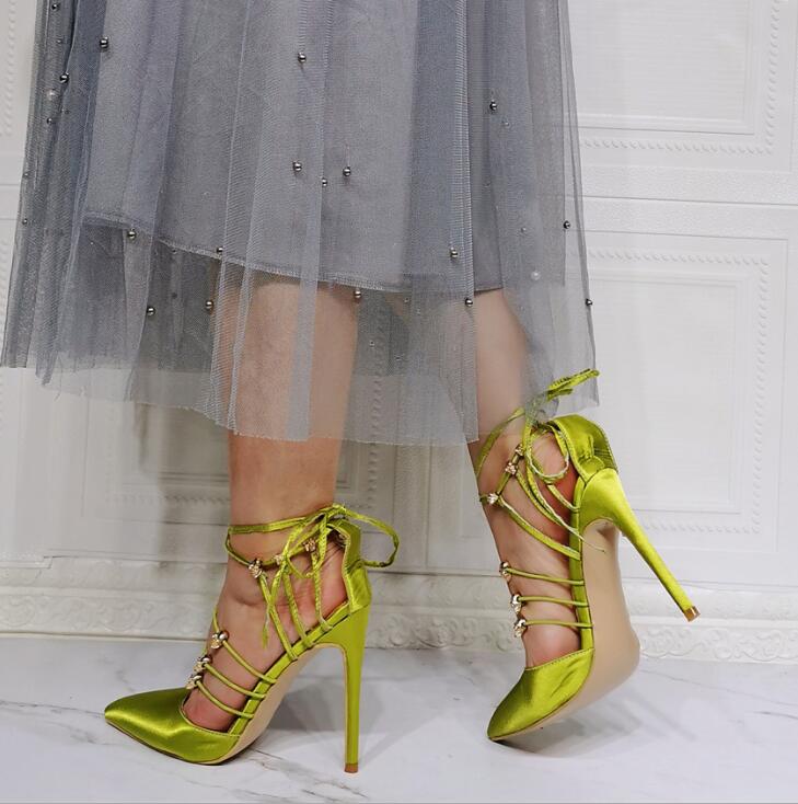 Skull satin satin high-heel pointed toe women's single shoes S-552