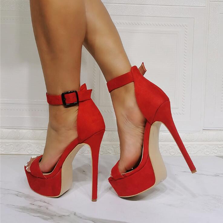 Red platform high heel sandals S-586