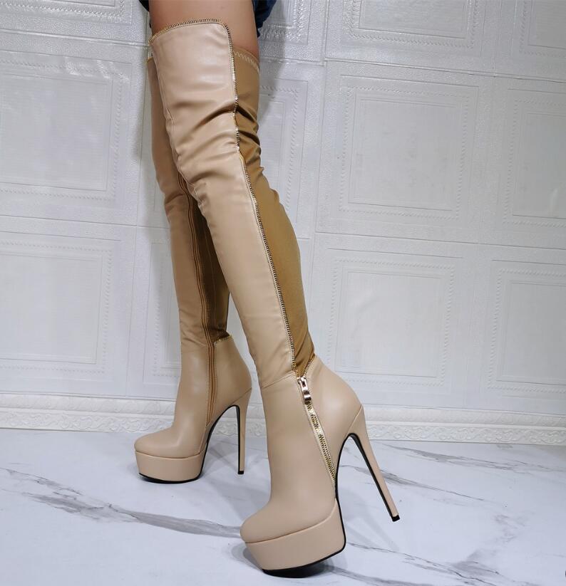 Color block high-heeled over-the-knee women's boots