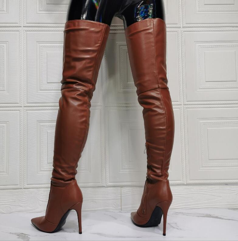 Brown stiletto heel side zipper sexy over-the-knee women's boots