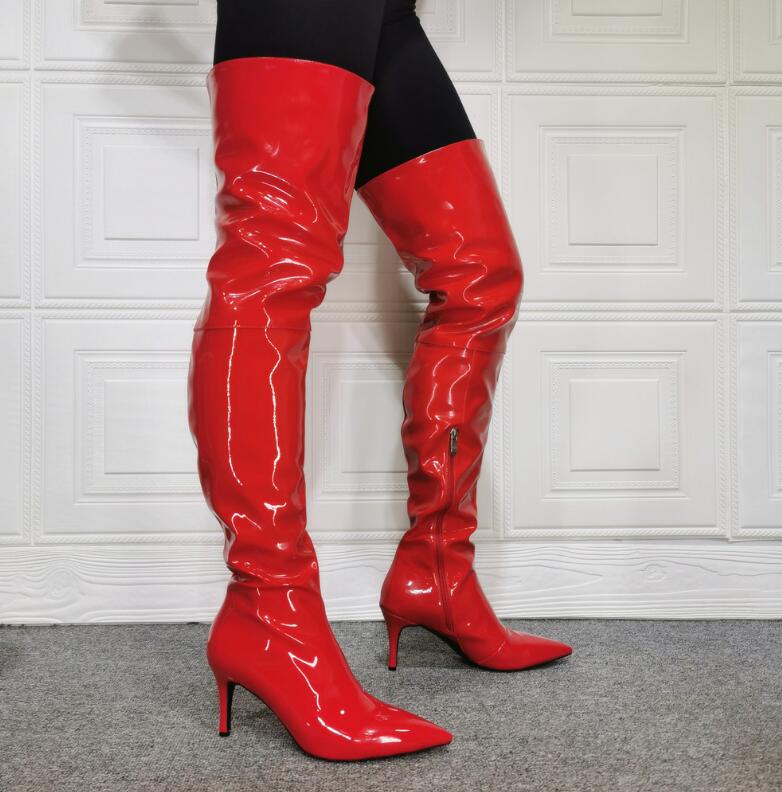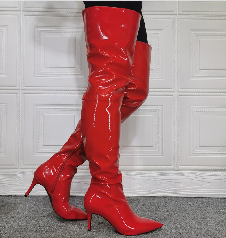 Red Stiletto Heel Side Zipper Over-the-knee Women's Thigh Boots