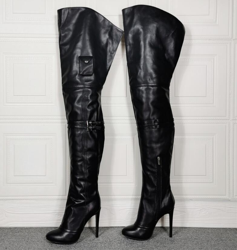 Sexy Round Toe Stiletto Leather Bag Over the Knee Women's Boots