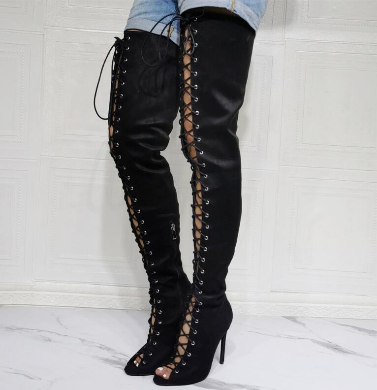 Sexy Fish Mouth Lace-up Over-the-knee Women's Boots