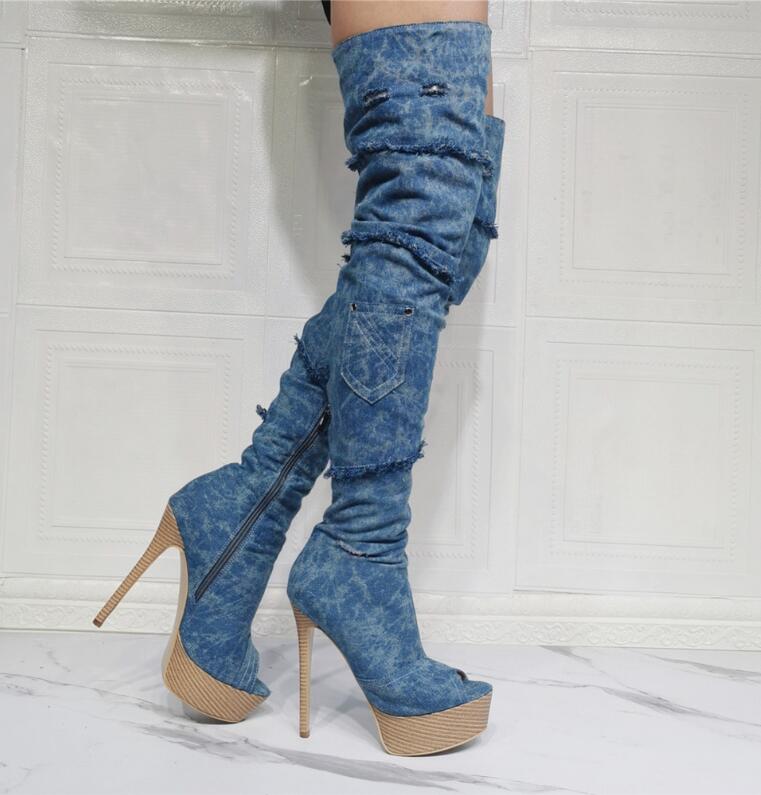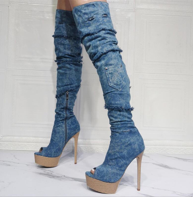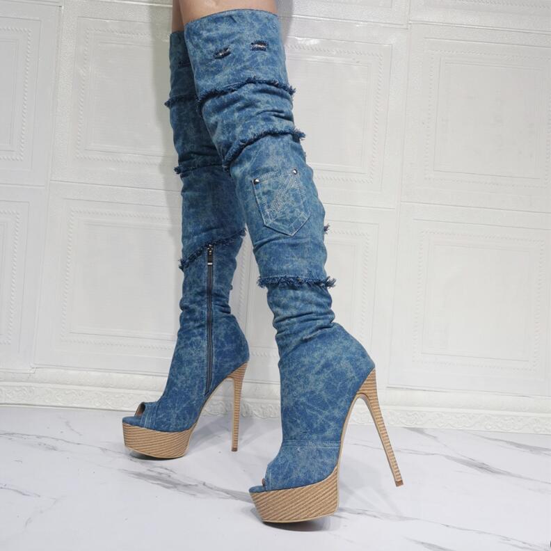 Sexy Denim Fashion Women's Over-the-knee Boots