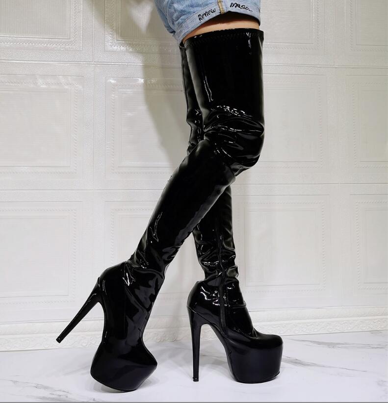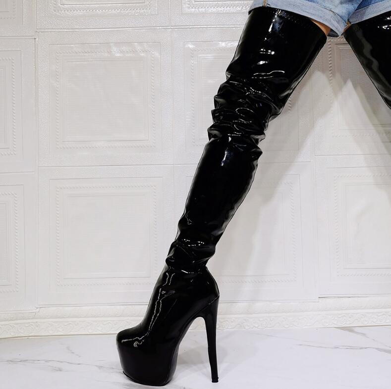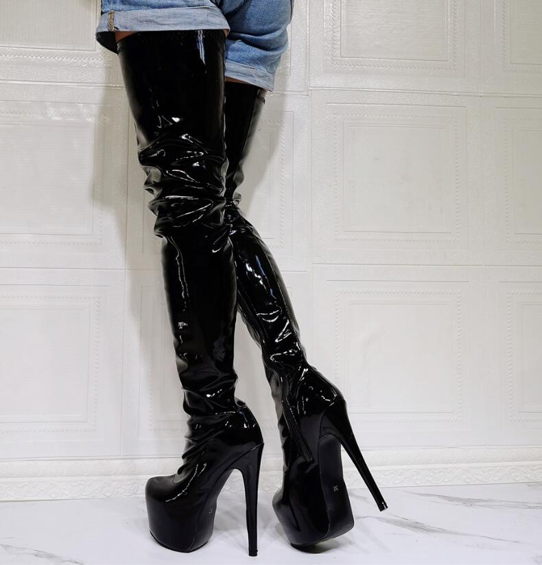 Black High-heeled Patent Leather Over-the-knee Women's Boots