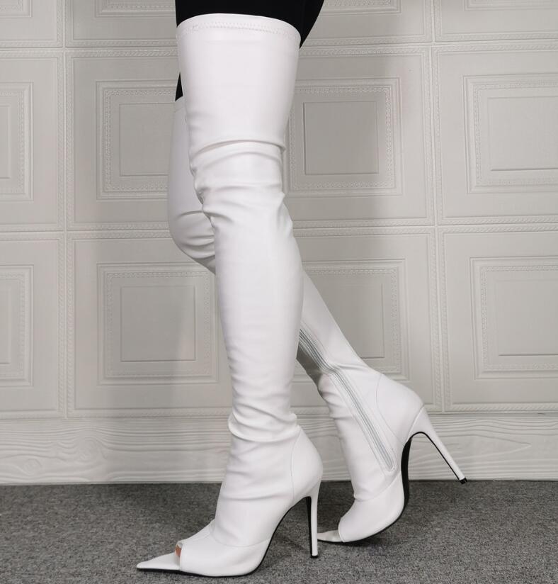 Black and White Fish Mouth Stiletto High Heel Sexy Female Long Boots