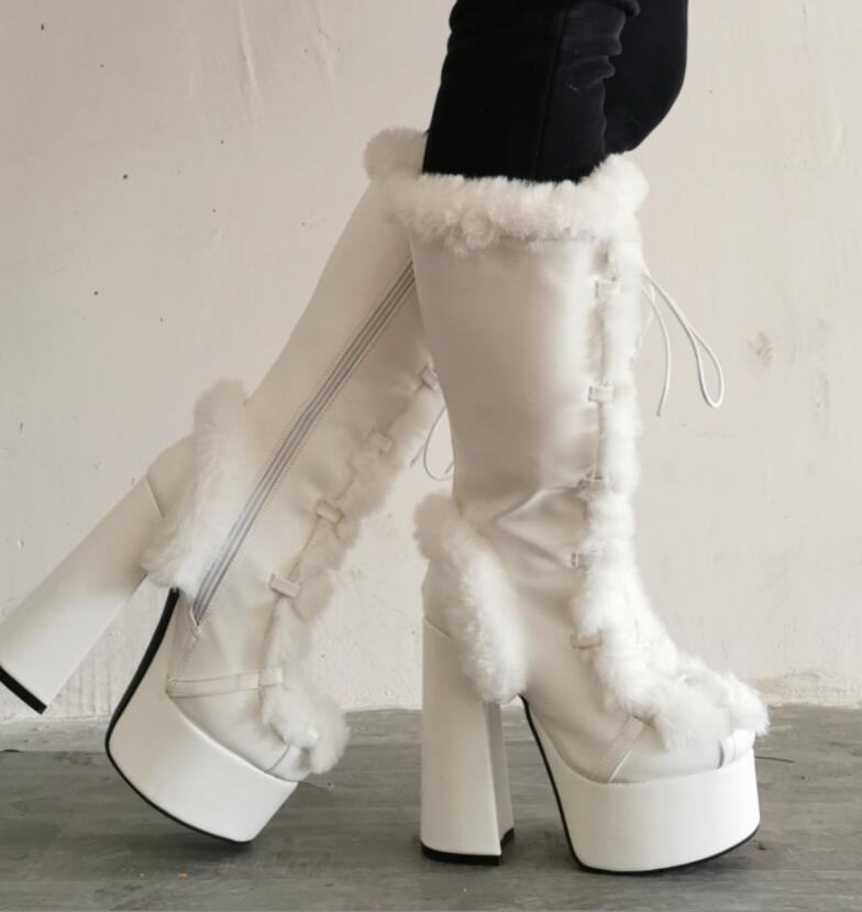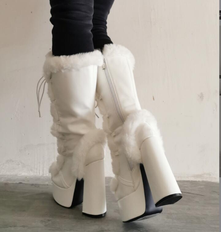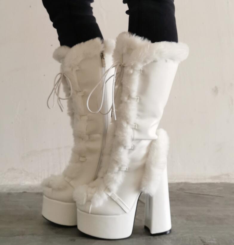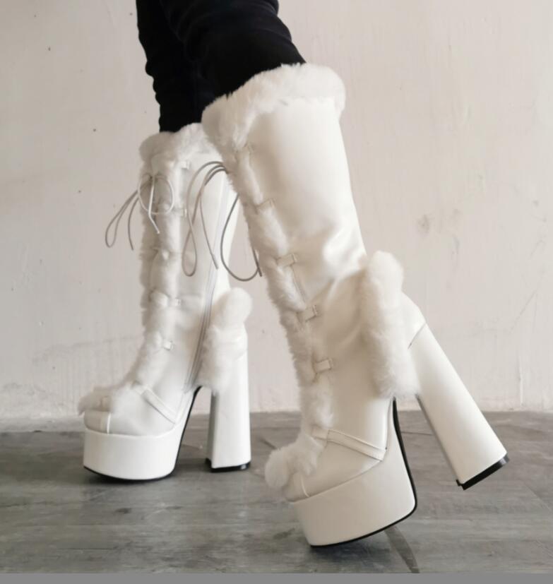Fashion Color Matching Furry Thick Heel High-Heeled Women's Short Boots