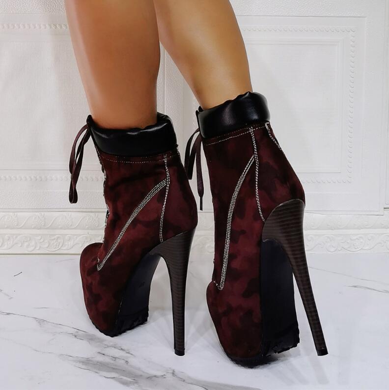 Camouflage Lace-up Fashion Super High Heel Women's Short Boots