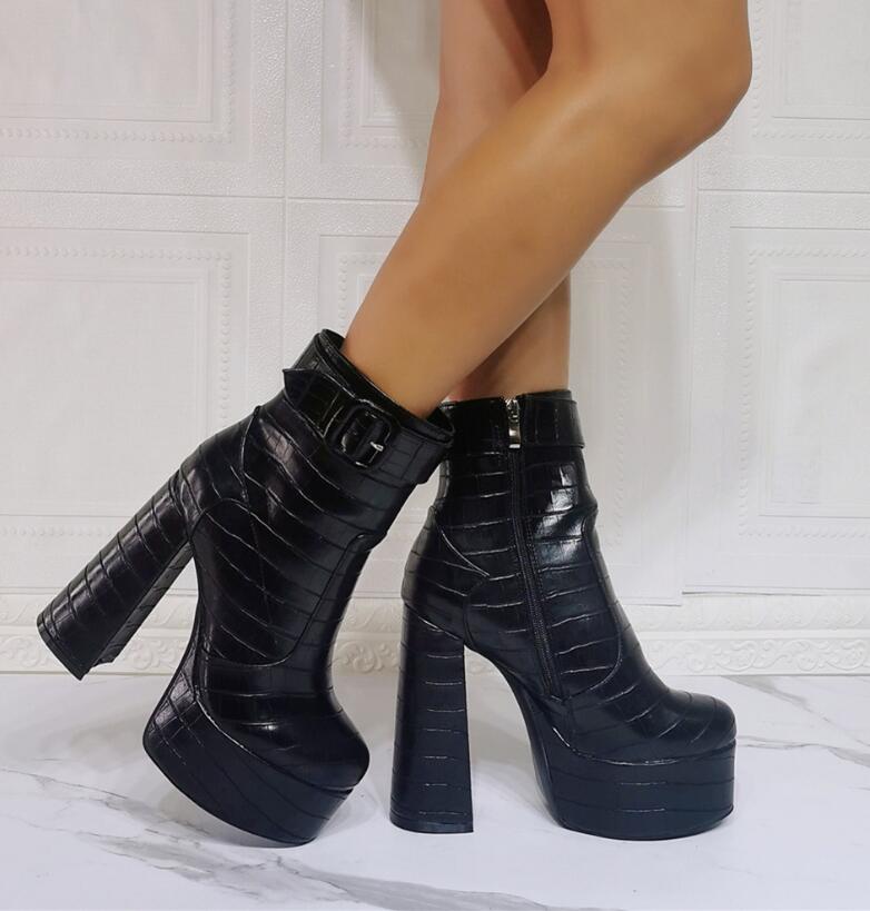 Black Snake Pattern Water Platform Thick Heel High Heel Women's Ankle Boots