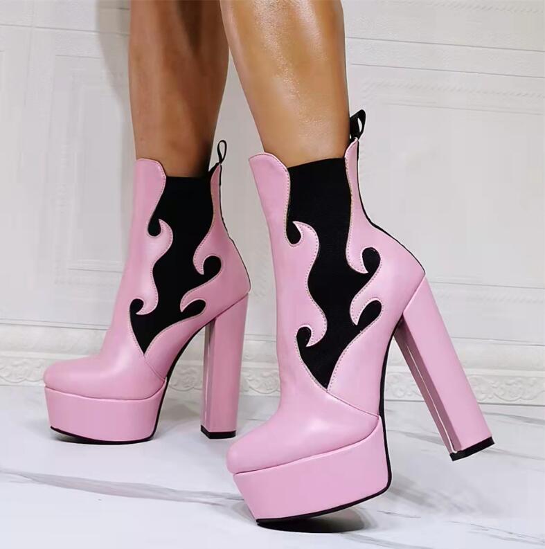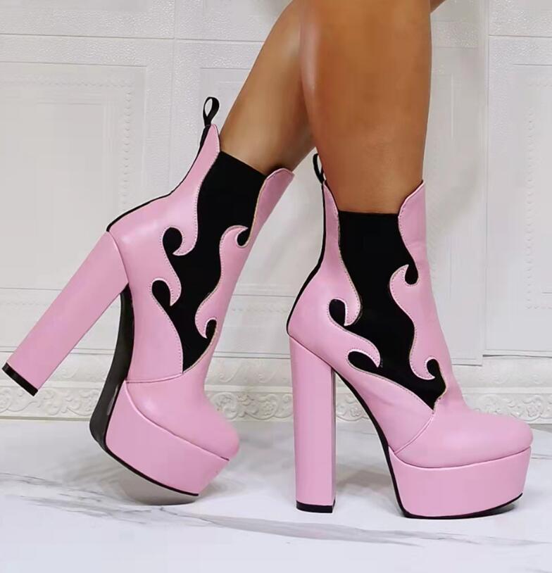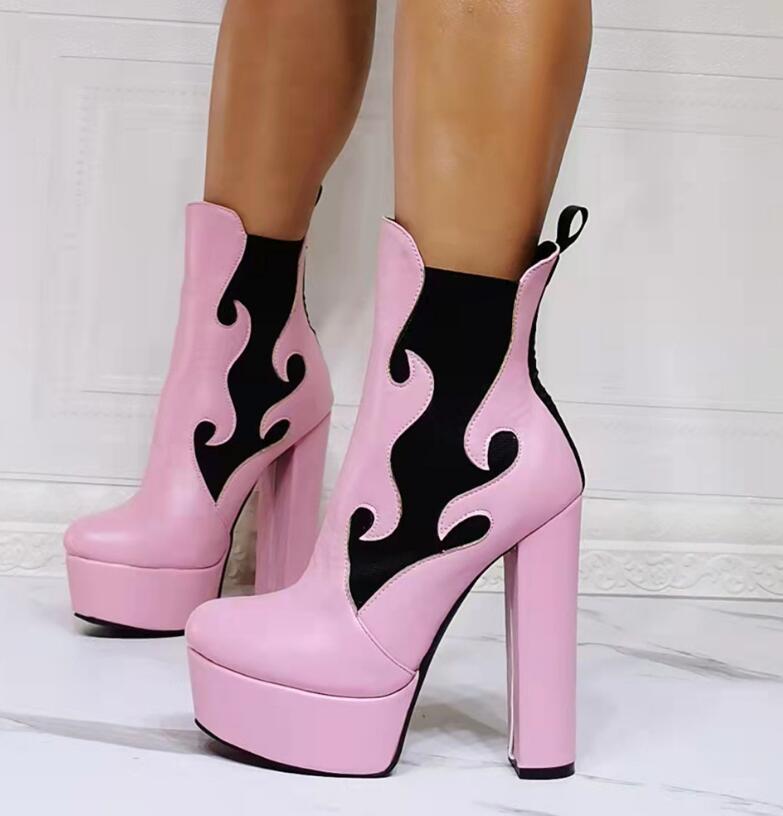Pink flame thick heel fashionable high-heel zipper female short boots
