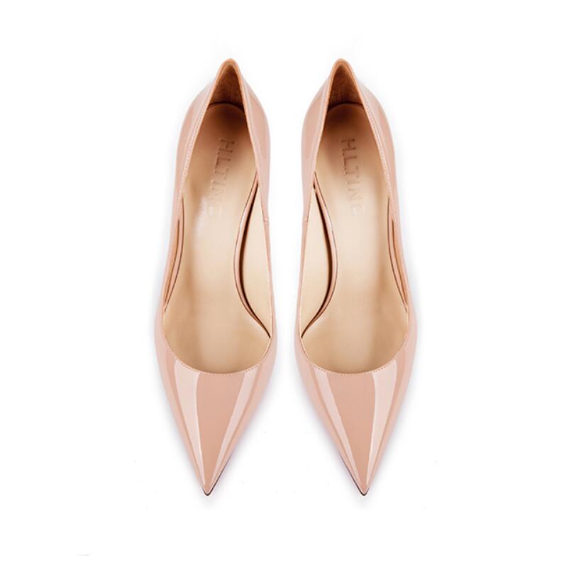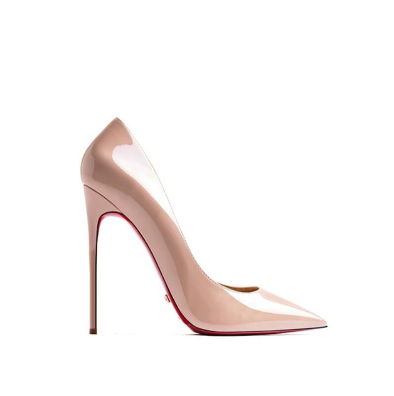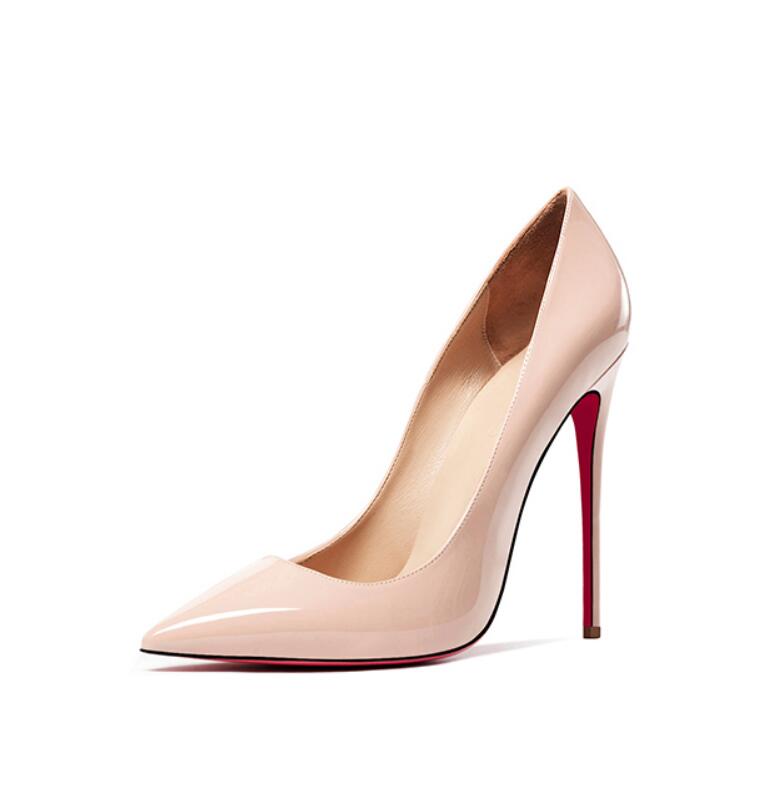 New Thin Heel 12cm Patent Leather Small High Heels Women's Nude Pink Sexy Pointed Shoes