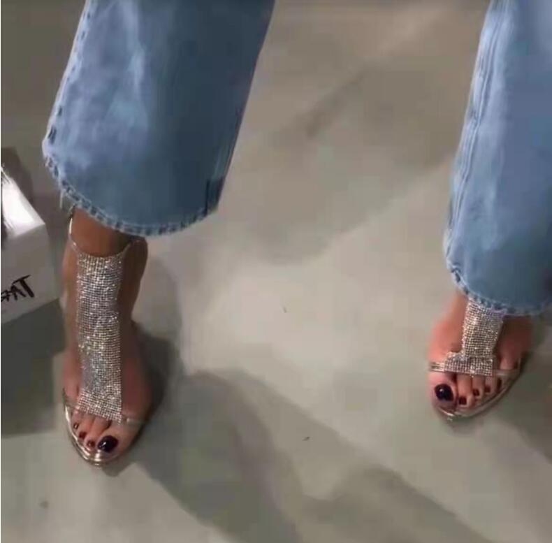 Summer New Fashion Metal Bright Diamond Stilettos Sexy Sandals Women's Shoes F5741