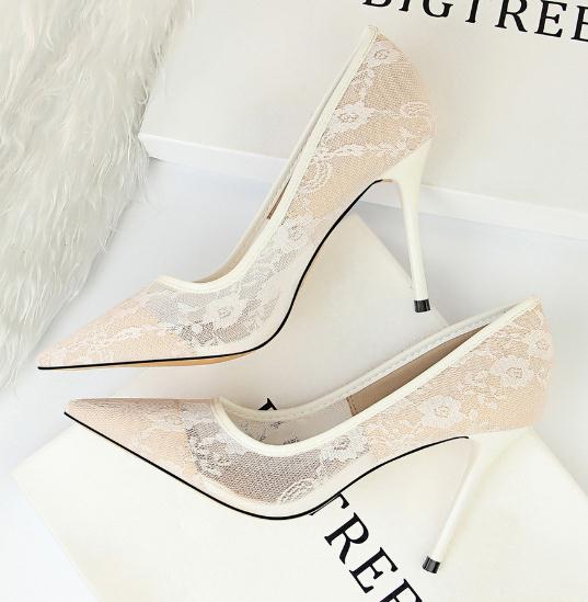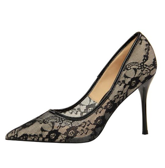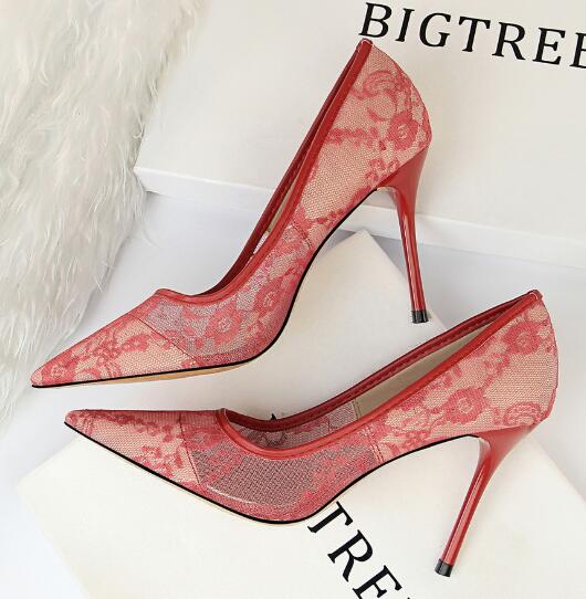 Sexy stiletto high heel mesh hollow lace high heels women's shoes 2022 F5743