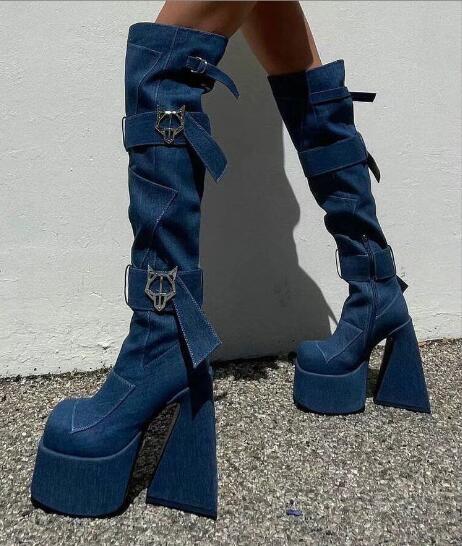 2022 fashion denim over-the-knee women's boots F5747