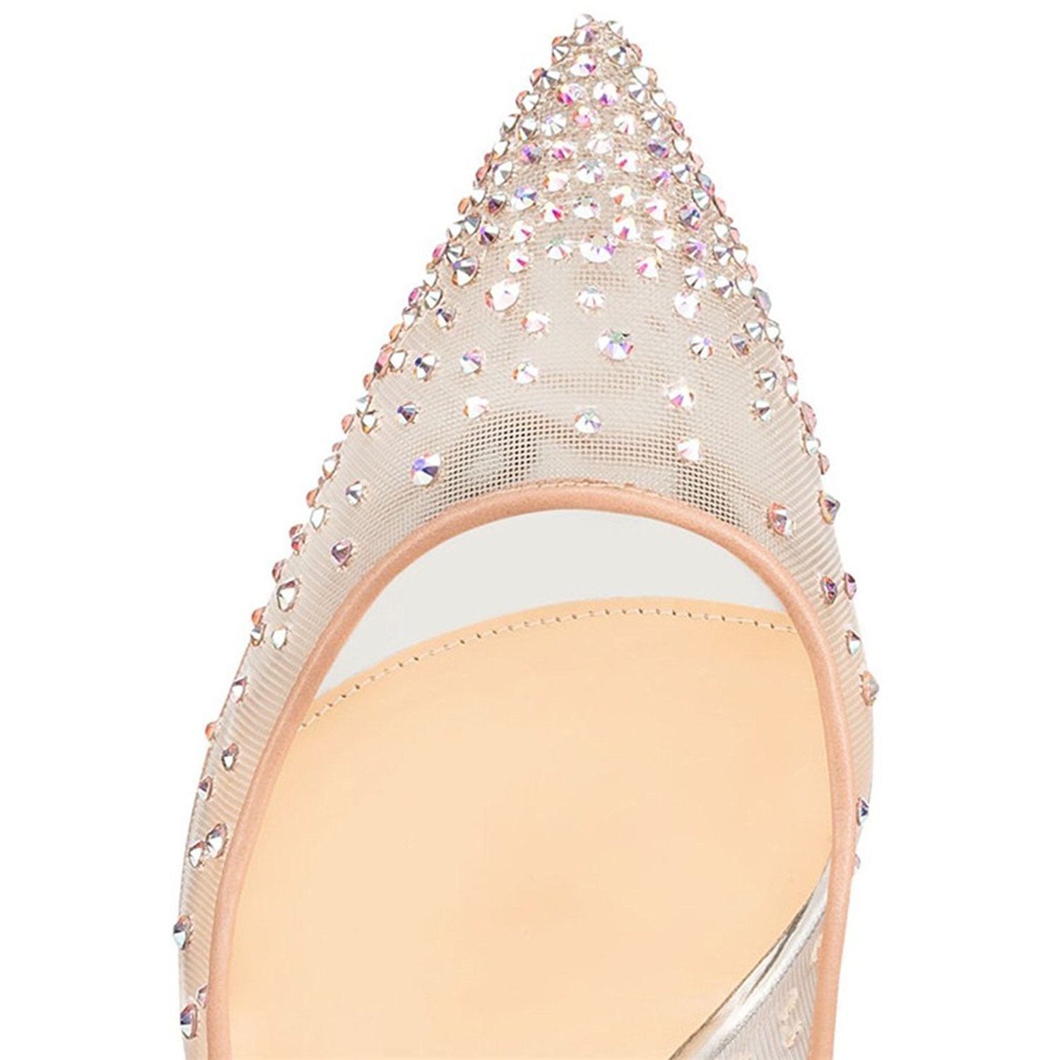 New Crystal Pumps Shallow Crystal Stilettos Solid Pumps Beige High Heels Woman Shoes