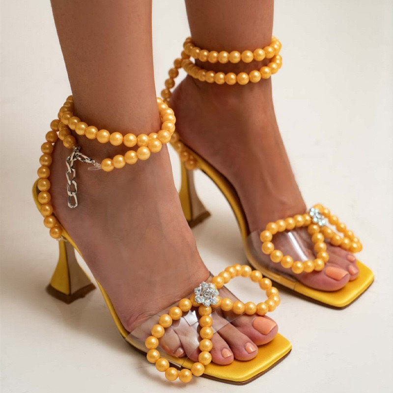 Yellow Beaded Women Shoes Summer Heels(9cm)