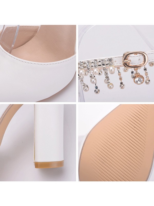 Women's PU Closed Toe With Pearl Chunky Heel High Heels