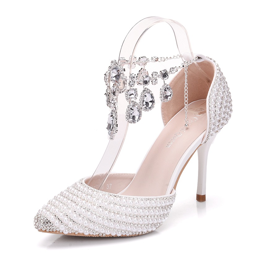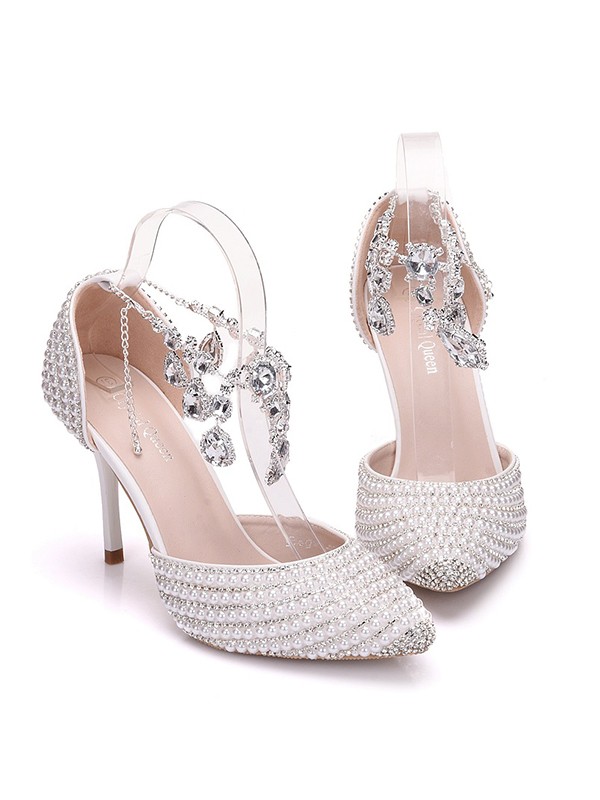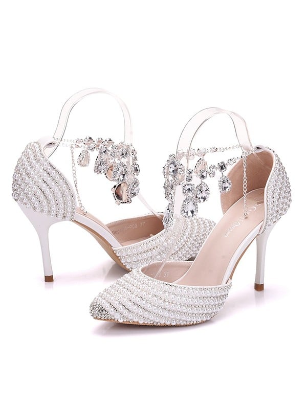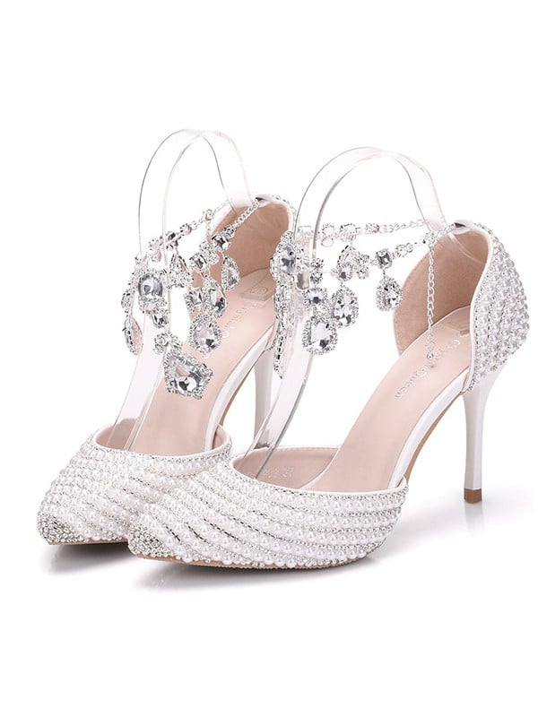 Women's PU Closed Toe With Pearl Stiletto Heel Sandals