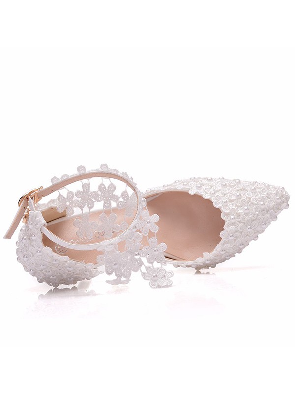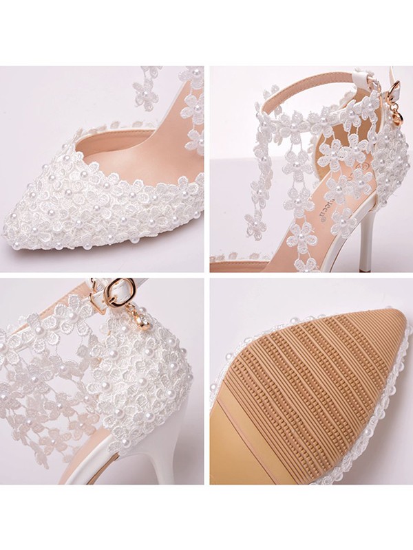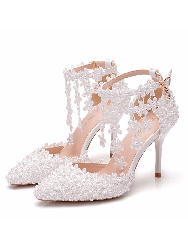 Women's PU Closed Toe With Flower Stiletto Heel Sandals