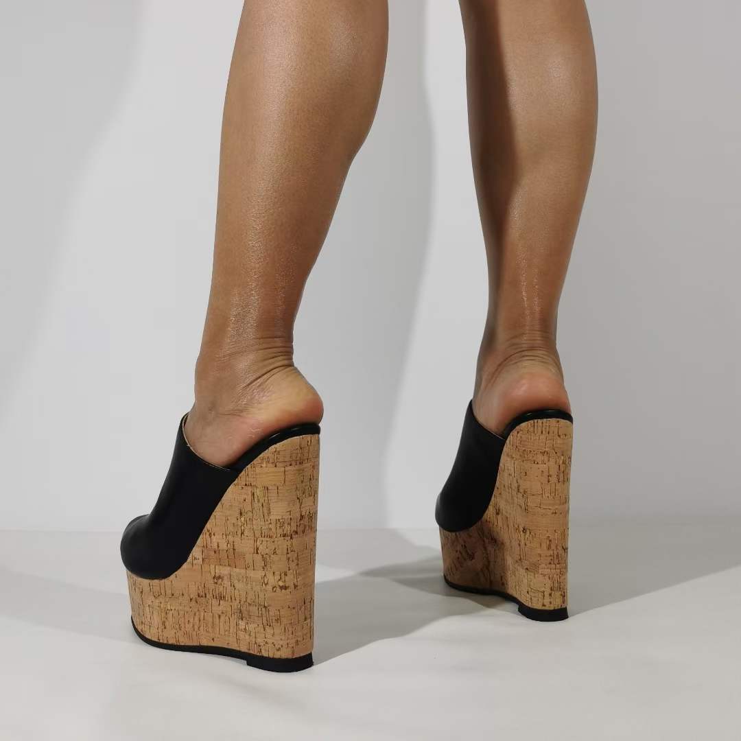 High Heels Womens Wedge Sandals Summer Slip-On Platform Sandal Peep Toe Comfy Shoes-Black