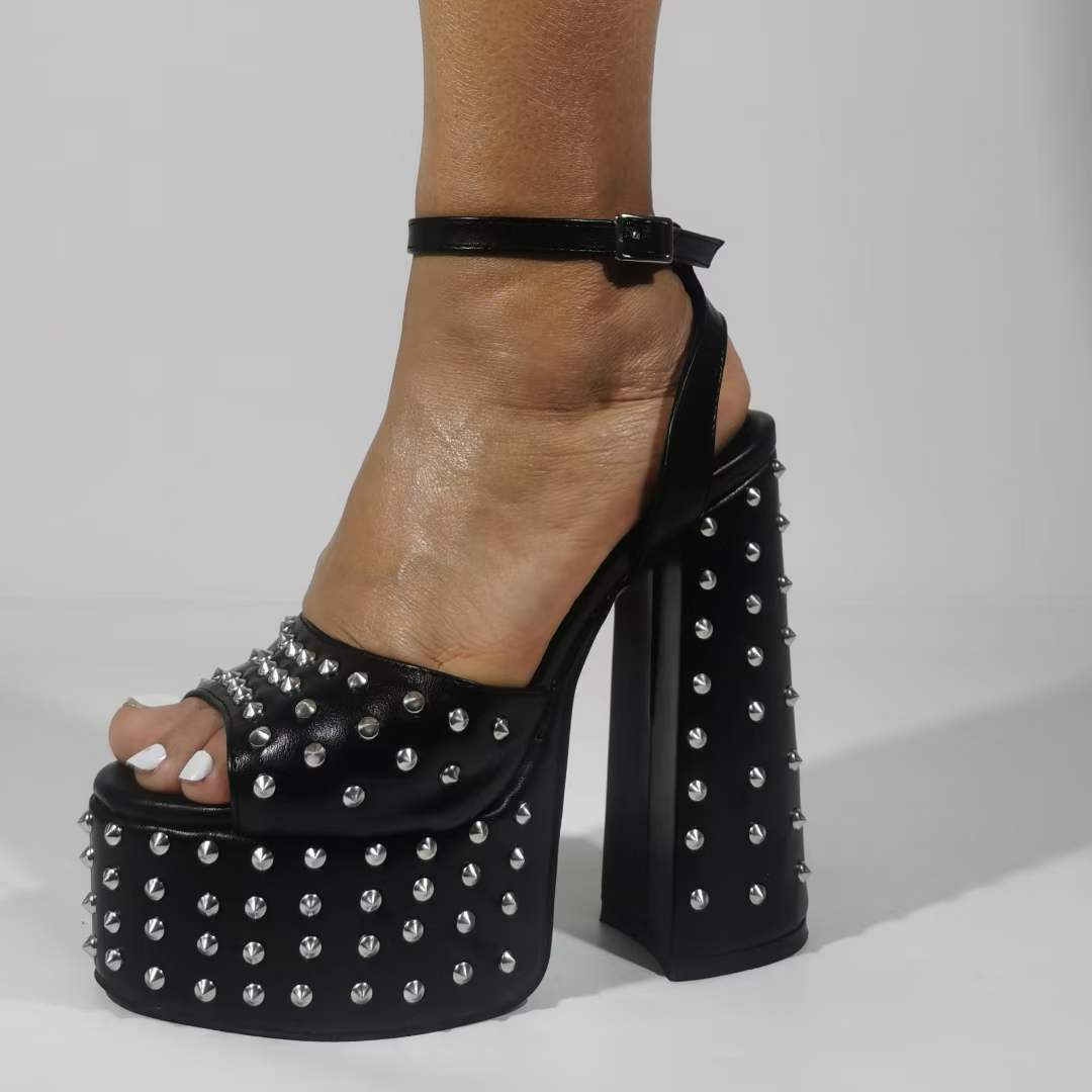 Fashion Sandals Ladies Thick Heel Shoes Waterproof Platform Rivet Heeled Shoes Sexy Evening Club Dress Shoes Summer Ankle Strap Boot