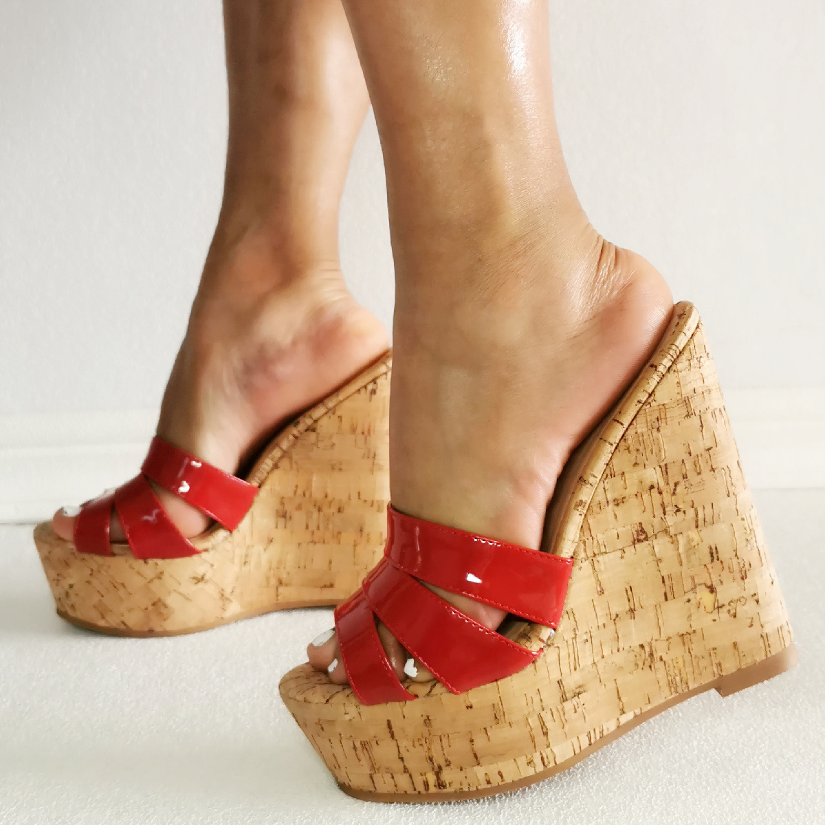 High Heels Sexy Wedge Sandals Party Shoes Slippers-Red