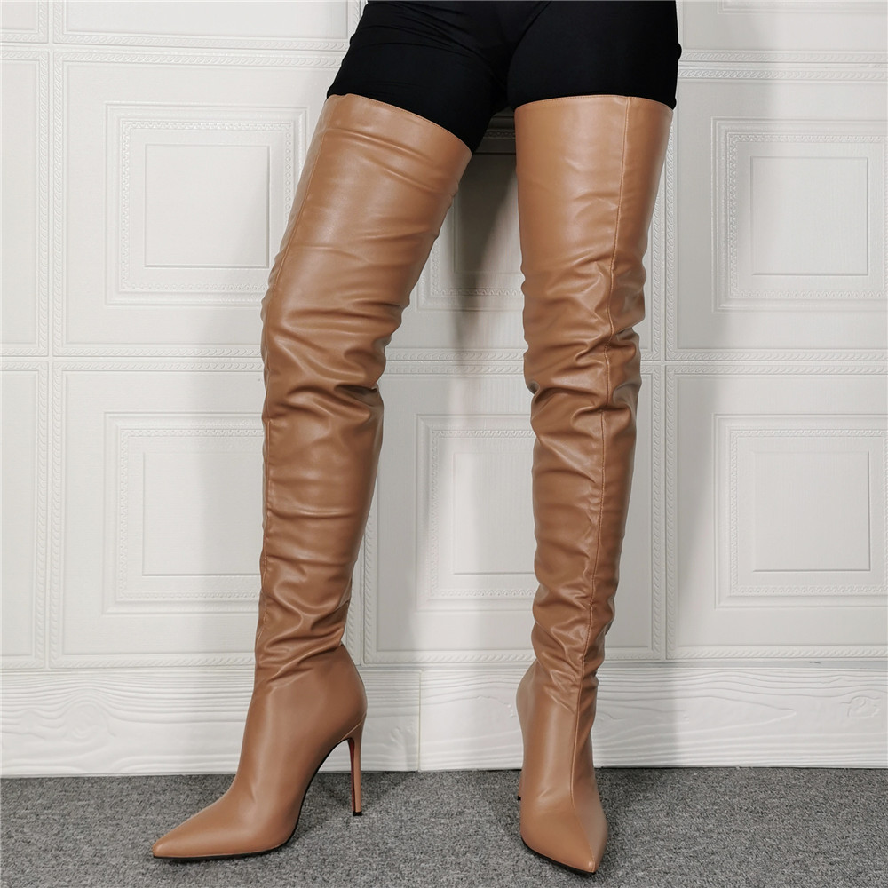 Women Thigh High Boots Over The Knee Shoes Pointed Toe High Heels Side Zipper Female Long Boots