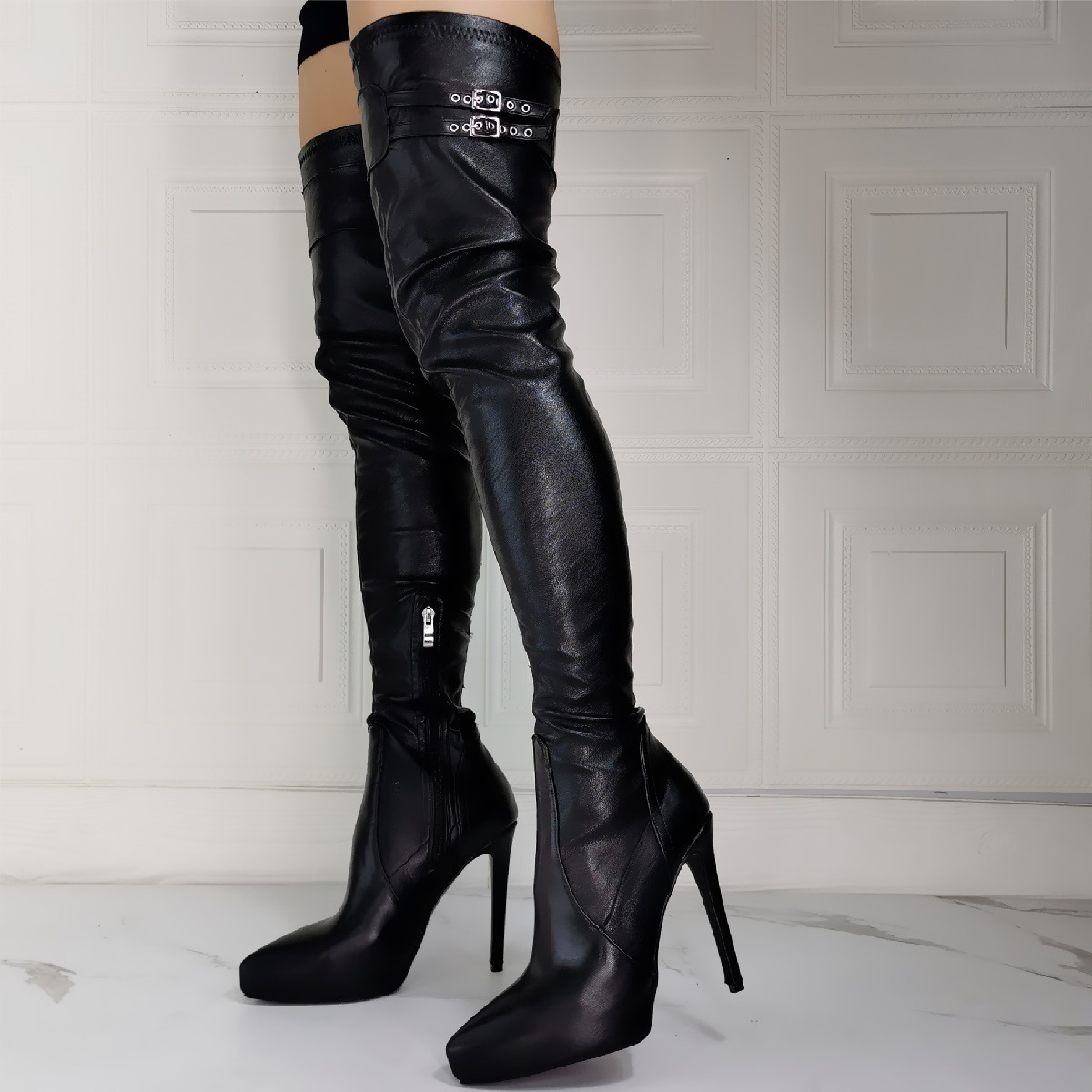 Over The Knee Boots Women,Long Boots Thigh High Boots Pointed Fashion Slim High Heel Belt Buckle Sexy Fashion Party Evening,Black