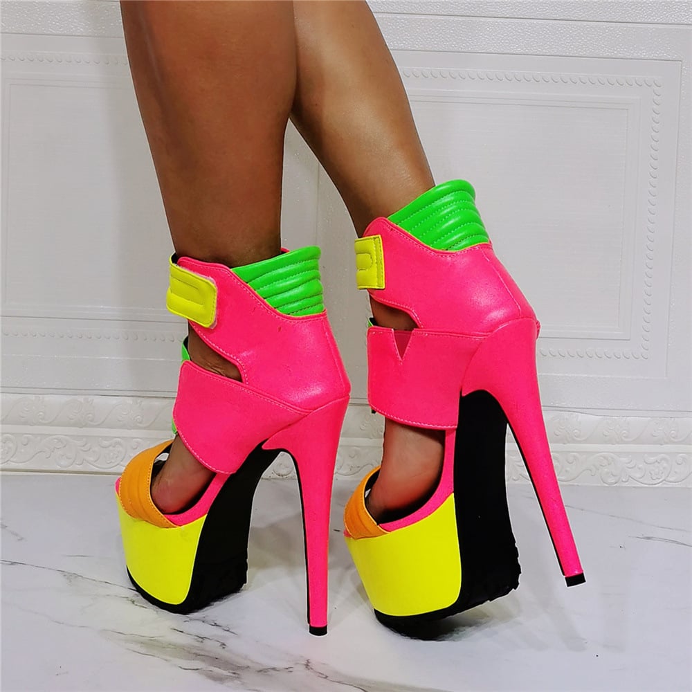 15CM High Heels Womens Platform Peep Toe Sandals Pumps Shoes For Party Dress-Yellow