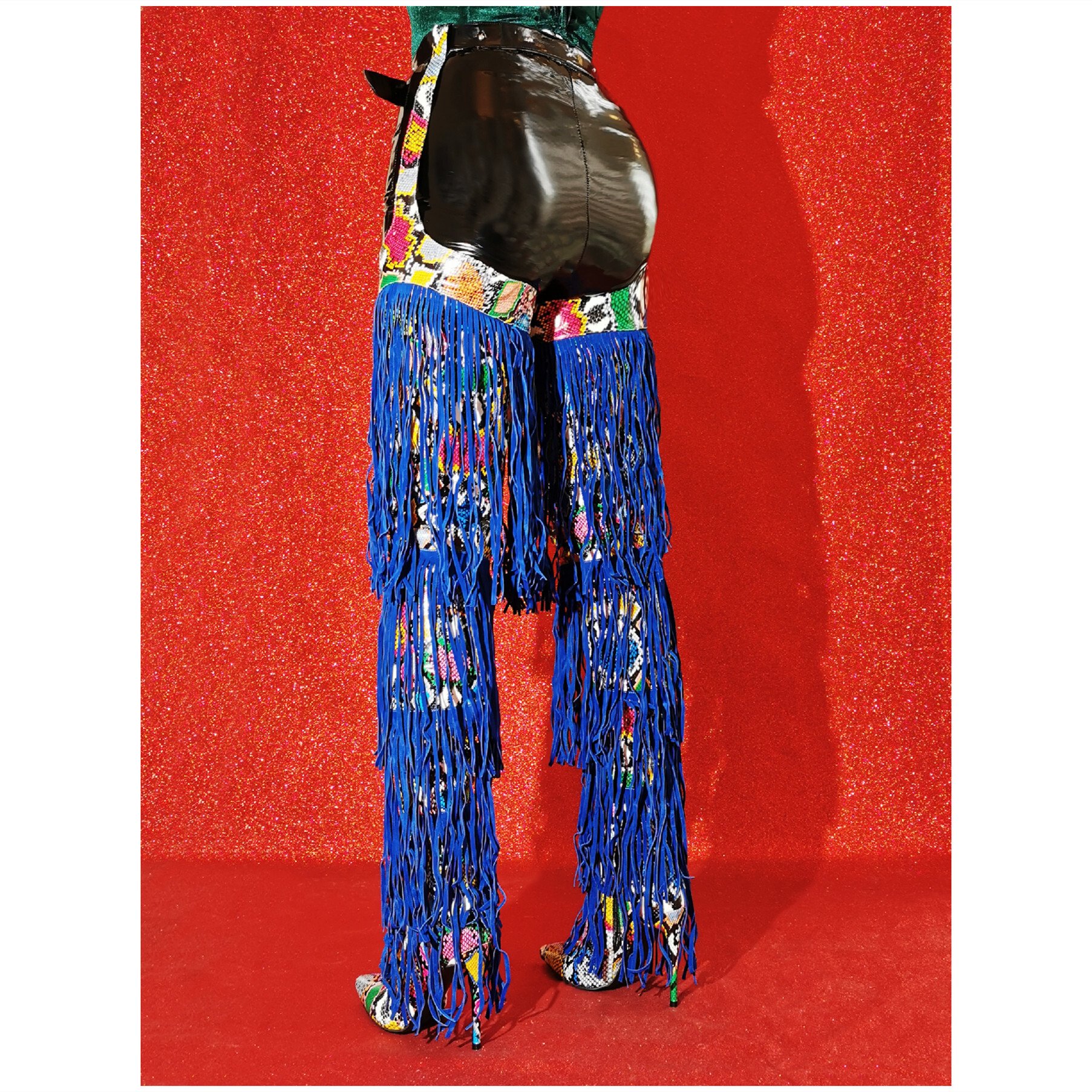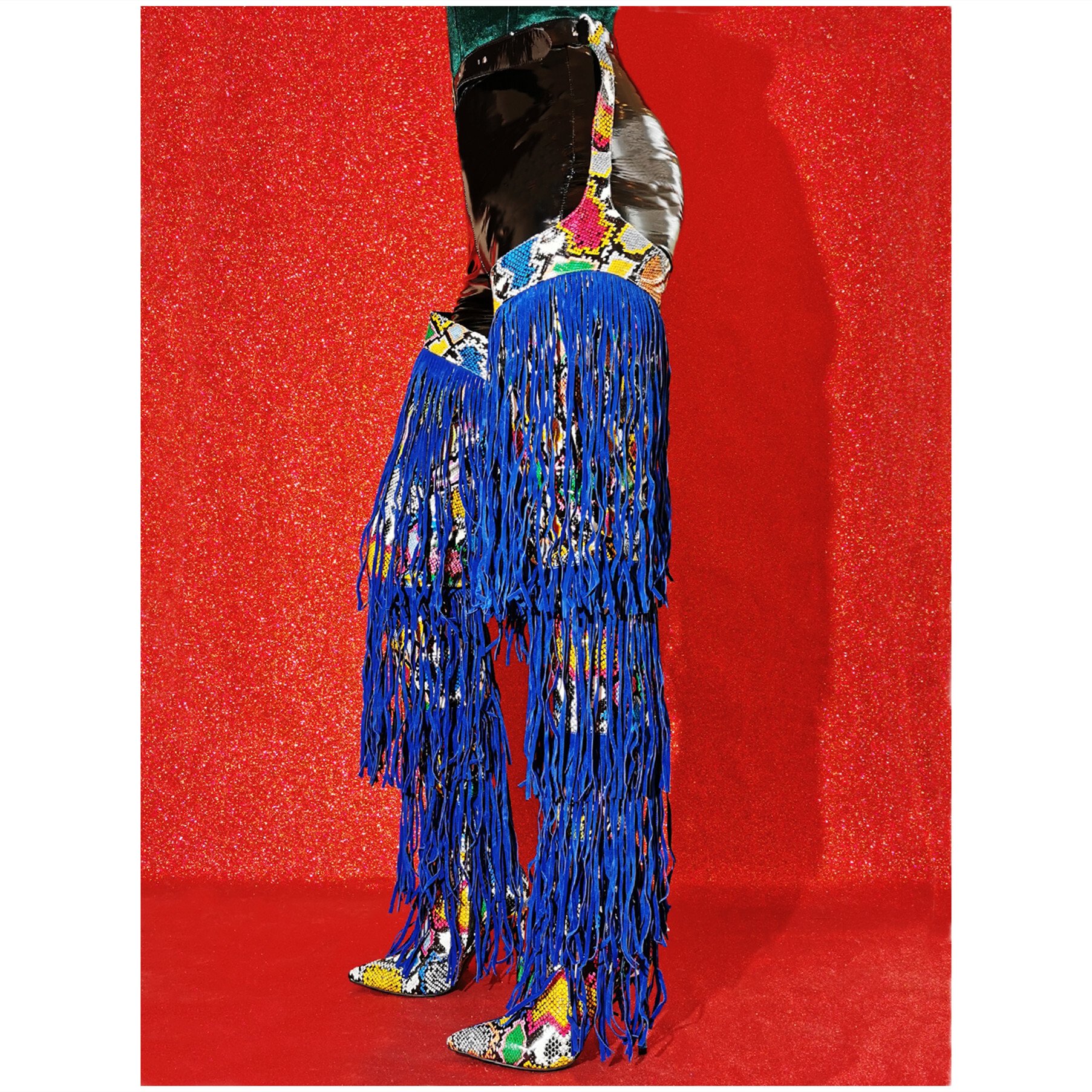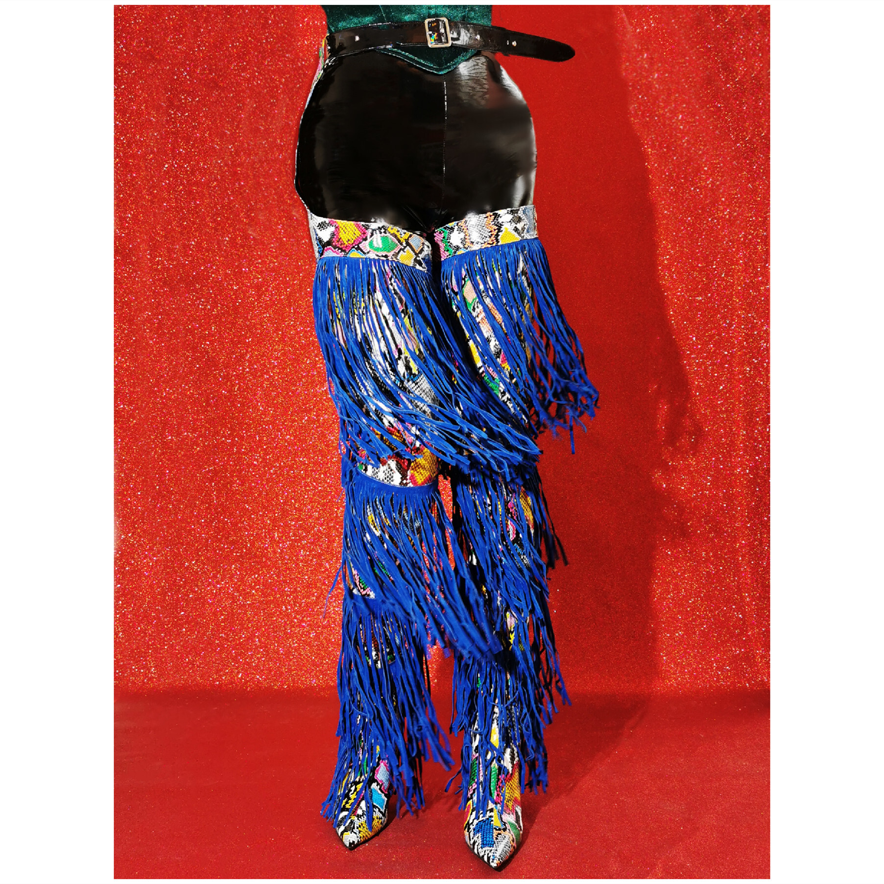 Women Thigh High Boots Stilettos High Heel Pointed Toe Belt Tassel Boots