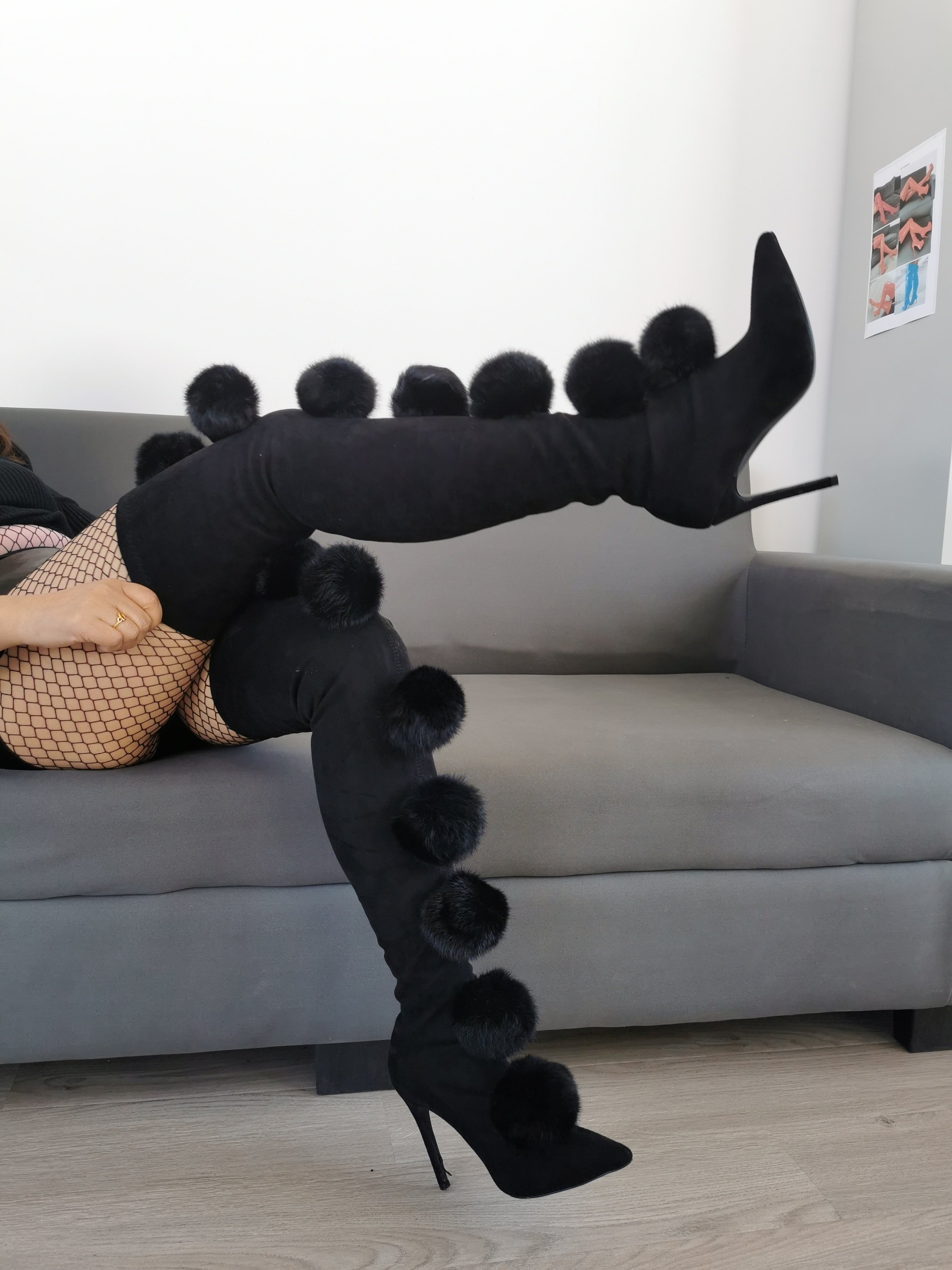 Women Pom Pom Over The Knee Boots Stretch Suede Boots Sexy Pointy Toe Slip On Ladies High Heel Boots