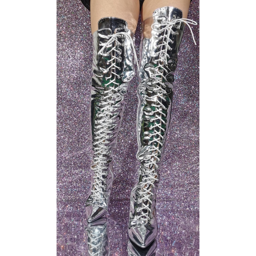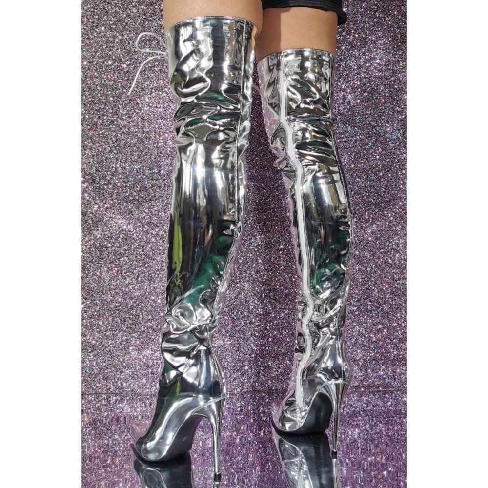 Women's Knee High Boots with High Heels Silver Thigh High Boots Party Boots
