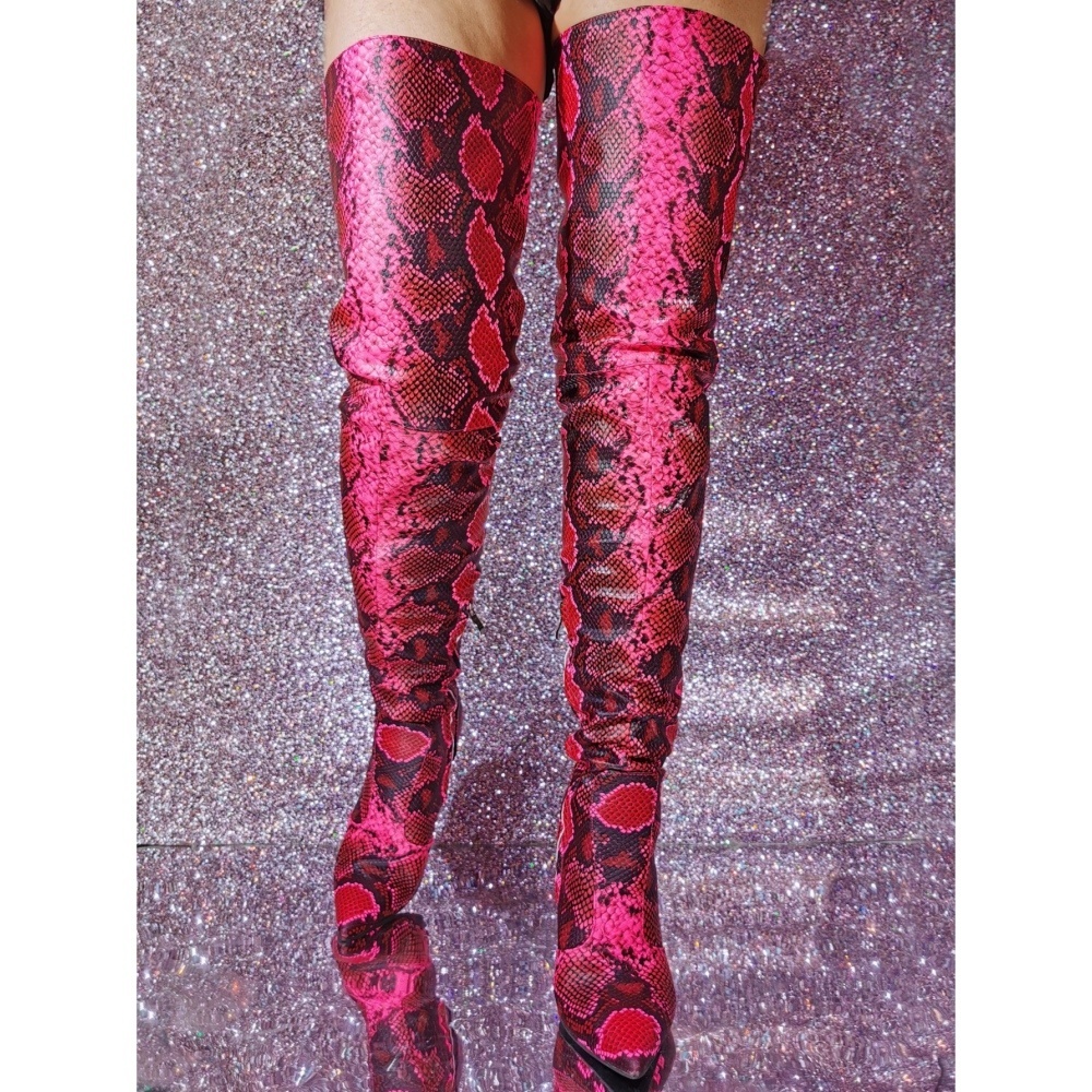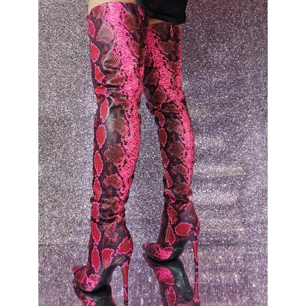 Womens Snakeskin Embossed Stiletto Thigh High Boots Shoes