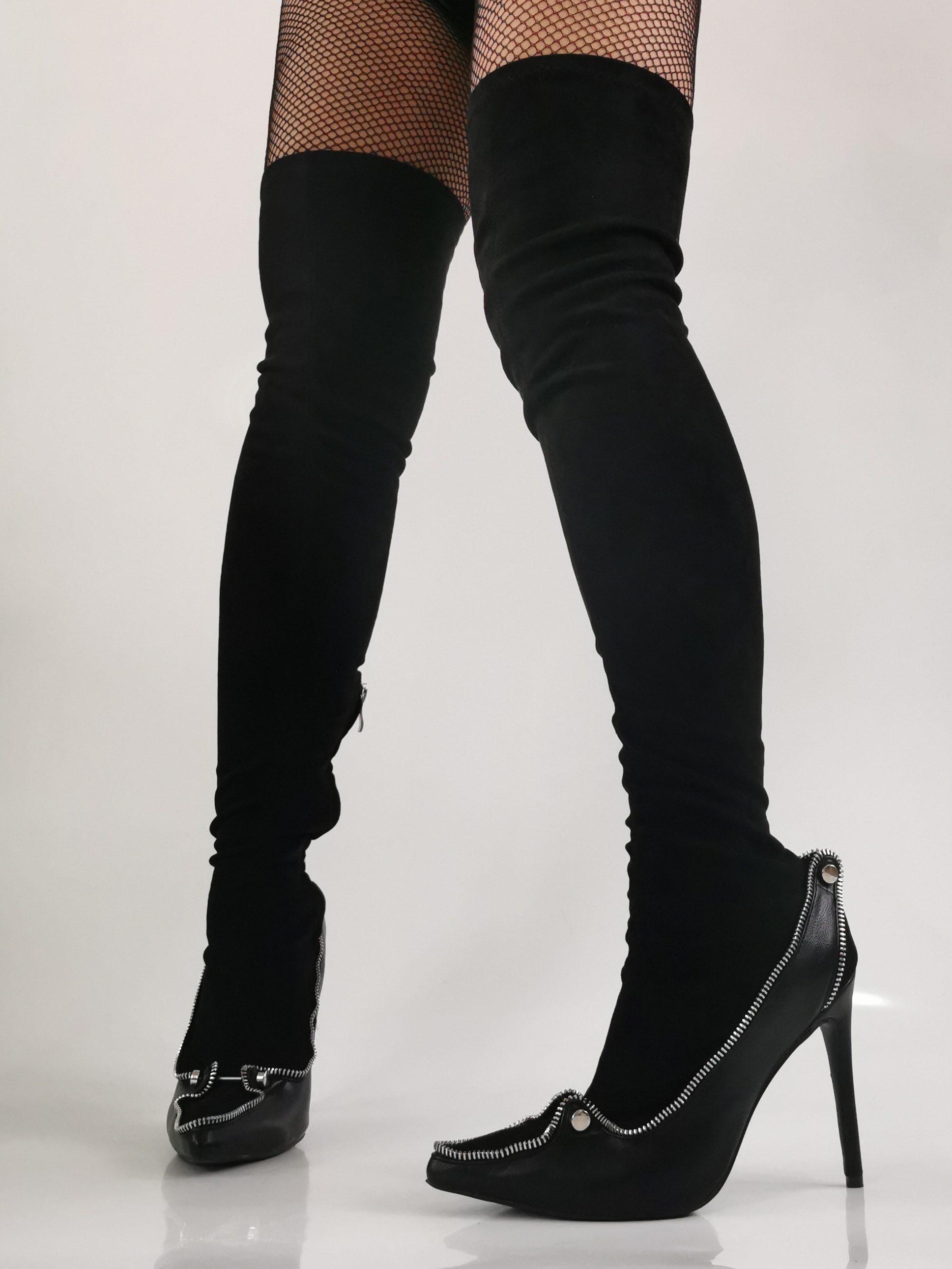 Over The Knee Fashion Black Women Spring Autume Party Dress Sexy Female Long Boots