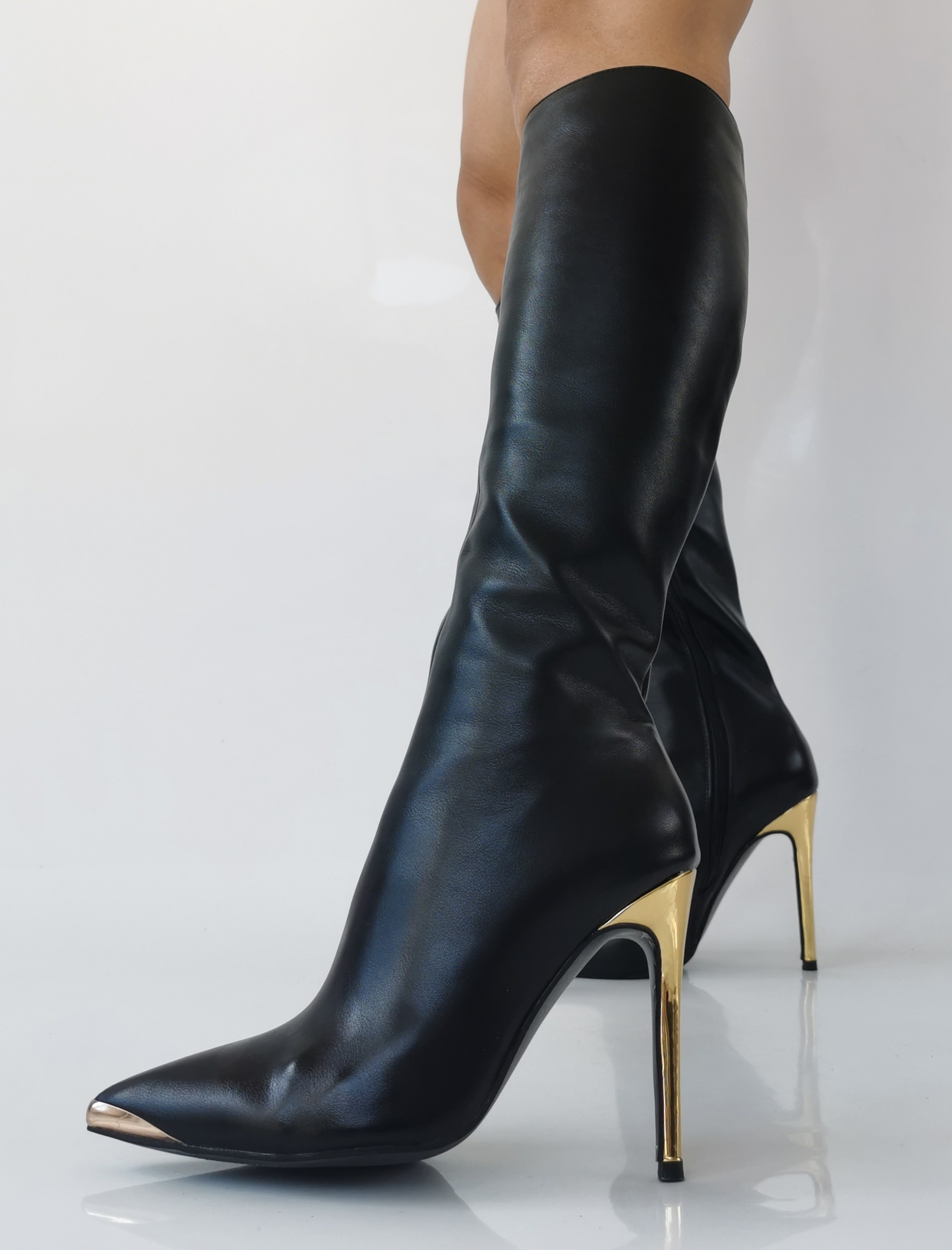 Black Matte Knee High Boots Women Pointed Toe Stilettos Custom Color