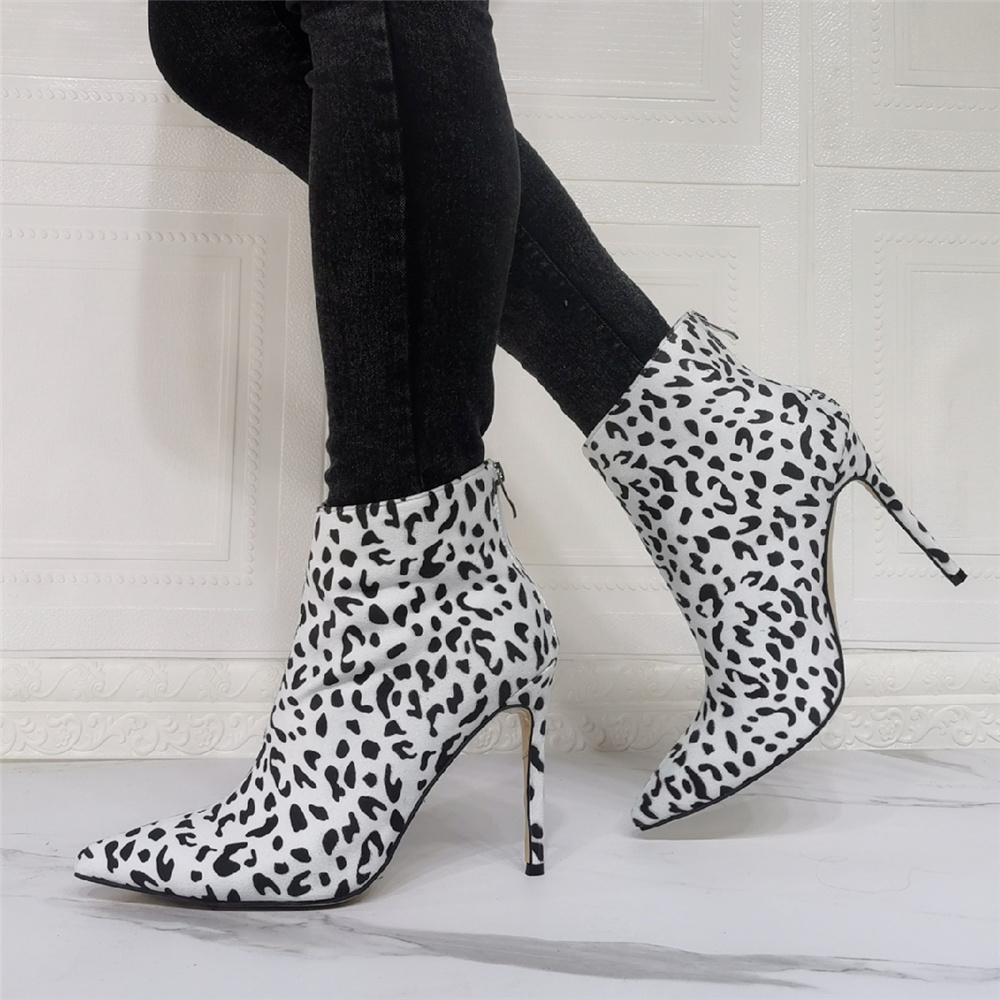 Womens Fashion Pointy Toe Zipper Leopard Ankle Boots High Heels Party Shoes Size